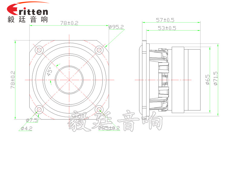 3寸方形塑料盆架外磁雙磁中低音喇叭,采用高性能、高密度鐵氧體,使喇叭低頻更加震撼; | |