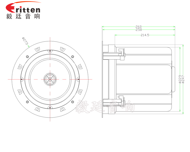 此款高音可旋轉8寸天花板喇叭,頻寬為110Hz~20KHz,音質清晰,穿透力強,主要用于辦公場所天花上,酒店大堂,等等高檔場所,是由毅廷音響工程師精心研發的一款超級完美的天花喇叭,值得推薦。 |