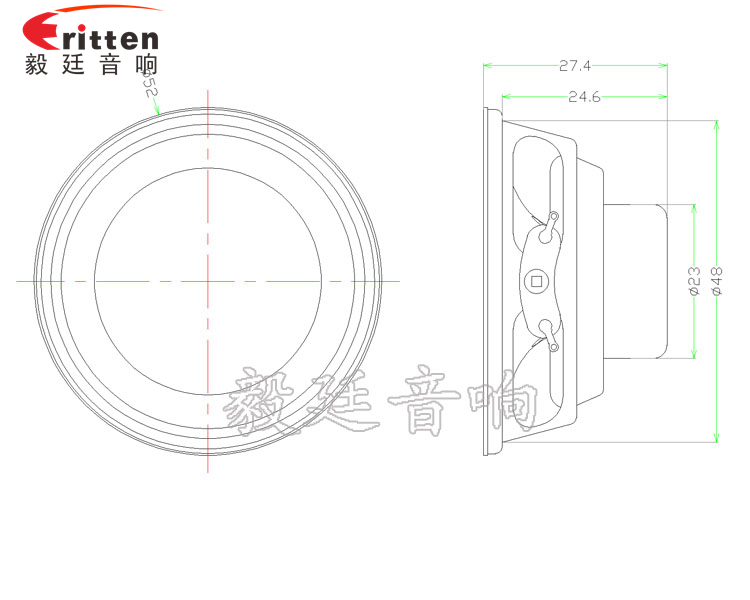 52mm鐵盆架內磁全頻喇叭,采用的是方便安裝、方便操作、牢固性好的帶U鐵一體式圓形鐵盆; | |